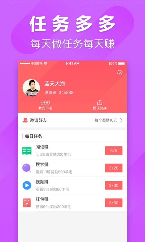 羊毛赚服务APP是一款让用户可以在家赚取佣金的网上推广获得佣金的软件。用户在平台上可以通过超多不同的路径赚取佣金,阅读、红包以及问答赏金等等,用户东东手机在家也能赚到钱,用户还能邀请自己的好友一起赚钱,你会获得叠加式的佣金。
