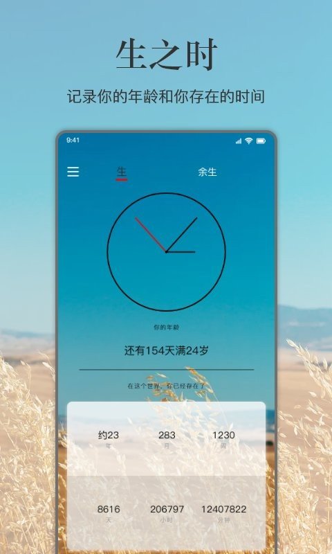 珍惜时光,不负余生。死并非生的对立面,而作为生的一部分永存。 ——村上春树生之时光,提倡生命有限,认真过好每一天。包括网红热门的生成时钟、自由调整随性而为、支持农历公历选择、高考倒计时等等。希望通过记录身边亲朋好友的生辰生日来时刻提醒自己珍惜当下,活成自己喜欢的样子。