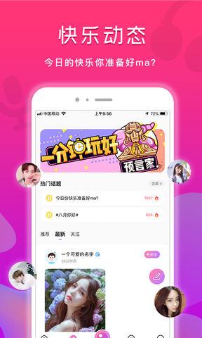 小伴点语音app能够24小时连续的开展语音交友,并且语音交友更安全性便捷,还能够一键隐藏信息内容,让交朋友更安全性。最终热烈欢迎大伙儿关心游戏罐头软件下载站,我给你提供大量全新最好用的手机软件。