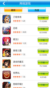 2、每一大选项里边都设立不一样的游戏支系,如主页就包括推荐、热门网游、精品手游大作等;