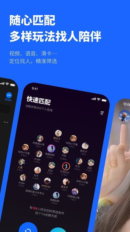 2、多种类型的展示方式,多样化的交友玩法,快速的进行好友的筛选,智能匹配。