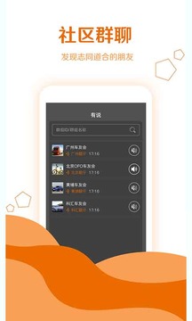 有说司机对讲APP是一款专门为司机用户开发的免费实时对讲语音聊天社交应用,自由创建群聊,随时多人语音对讲,不限距离,一呼百应。 可用于安卓系统,苹果ios系统,选配蓝牙手咪等硬件, 使用更加便捷。