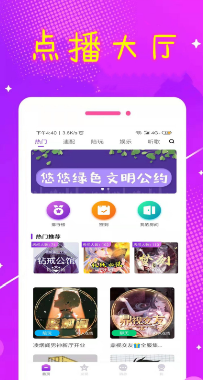 2、好听的声音在这里都能够找到,而且还能够与其他用户在这里进行K歌,玩游戏。