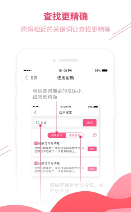 【海量】10W+话术供您搜索,遇到不知道怎么回复妹子时,来App搜一下,N+精彩回复拉近跟妹子的距离;