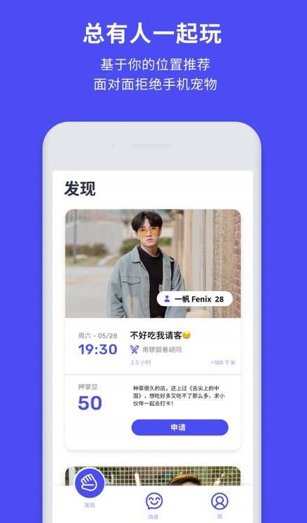 2、网络上虽然也能畅快聊天,但是终究没有线下互动有趣,而“合掌”的存在就能让大家更好的交友。