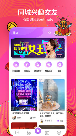1、蜂窝互娱app随时随地共享动态、体会奇特,PO出你的时刻自拍美图照片、出游的景色的一个综合性互动中心;