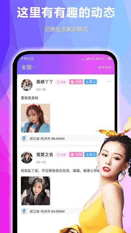 一个有很多男神女神的社交平台,这里的用户的质量相对还是不错的,这里的聊天氛围也是很好的,没有强制的会员充值,所有的用户注册都是通过严格的人工审核的,所以你可以放心的交往,这里的聊天方式也有很多,非常的好玩!