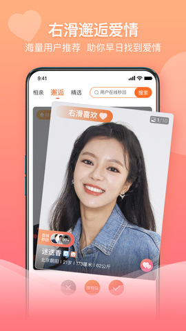 2、邂逅:简单左右滑,有缘之人终会相遇;