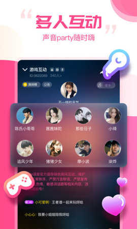 【多人互动】线上party随时随地开,唱歌、游戏、电台、真心话、听故事,互动玩法任你选择;