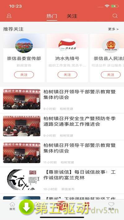 首页:时政、推荐、社会新闻、崇信新闻、专题、党建、文明实践等