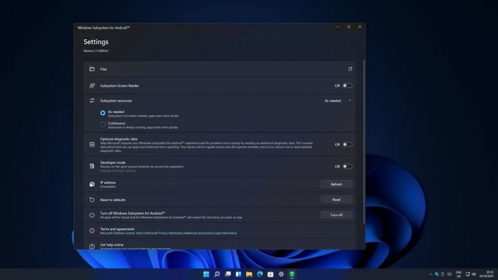 在后台也会安装 Windows Subsystem for Android,这是支持在 Windows11上运行 Android 应用的核心技术。