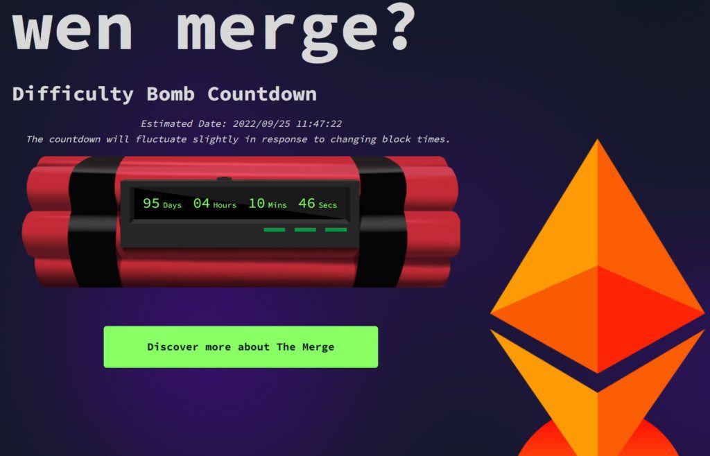 据wenmerge网站显示,当前以太坊难度炸弹可能将在北京时间9/25号晚间7点48分引爆,考虑到在6/29进行灰色冰川拆炸弹升级前,当前难度正在不断地提升、出块时间不断拉长,实际情况可能会错误估算,延后或者提前。而在预定的9月中难度炸弹引爆前,以太坊开发人员必须依序完成Sepolia、Goerli两者网络的合并,合并完成后才会轮到以太坊主网。