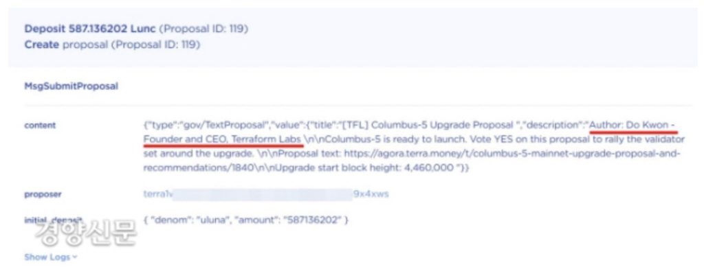 根据Terra Finder历史纪录,在2021年8月11日时,该钱包曾进行一笔587LUNC的交易,并发起一项与生态治理平台Agora相关的提案,提案发起人署名就是Do Kwon。并且在交易完成六分钟后,Do Kwon在Twitter上发布了一条提及该提案的推文。