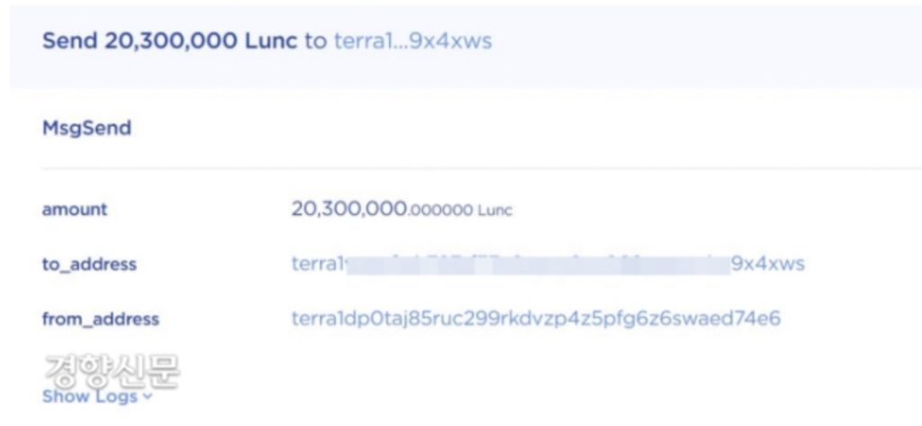 另外据韩媒《JTBC》20日报导,负责调查Terra崩盘事件的金融证券犯罪联合调查组,最近对Terra的核心设计者们下达了禁止出境措施,并发出了传唤通报。