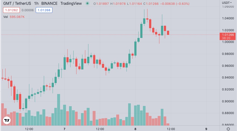 STEPN证实将在以太坊构建Realm3后,治理代币GMT受此激励,最高涨逾11%至1.013美元,截稿前报1.014美元;而游戏代币GST则一小时内涨近6%最高至0.1145美元后随即回落,截稿前暂收0.111美元。