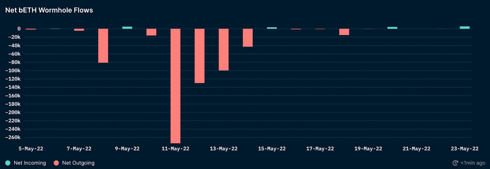 在UST价格开始脱钩之前,这种投资策略一直运作良好,但随着投资者对Terra的信心下降,Anchor用户开始争先恐后地把自己的代币从平台上撤出,从那时候起,他们把基于Terra链上的bETH桥接回以太坊,以转换回stETH。