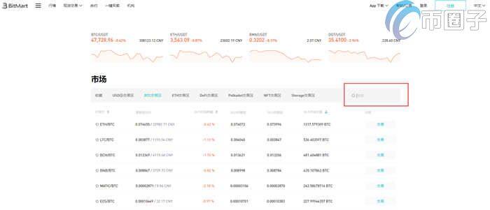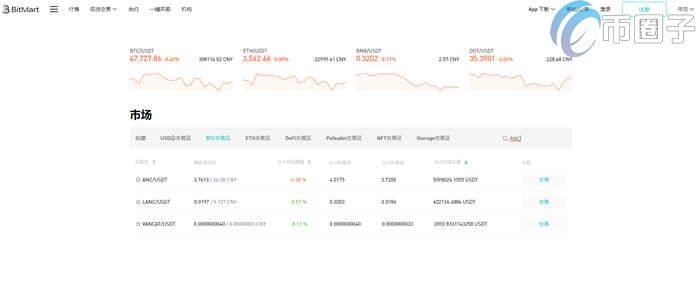 第一步:登陆BitMArt官网( https://www.bitmart.news),进入行情页面