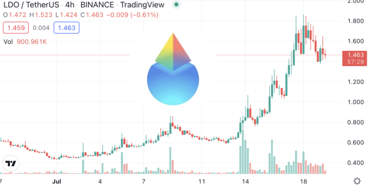 Lido代币近一周涨幅惊人,7月12日时仅报价0.5858美元,自截稿时间报价为1.4957美元,单周涨幅高达154.35%,这或许是Lido社群急于出售治理代币的主要原因。