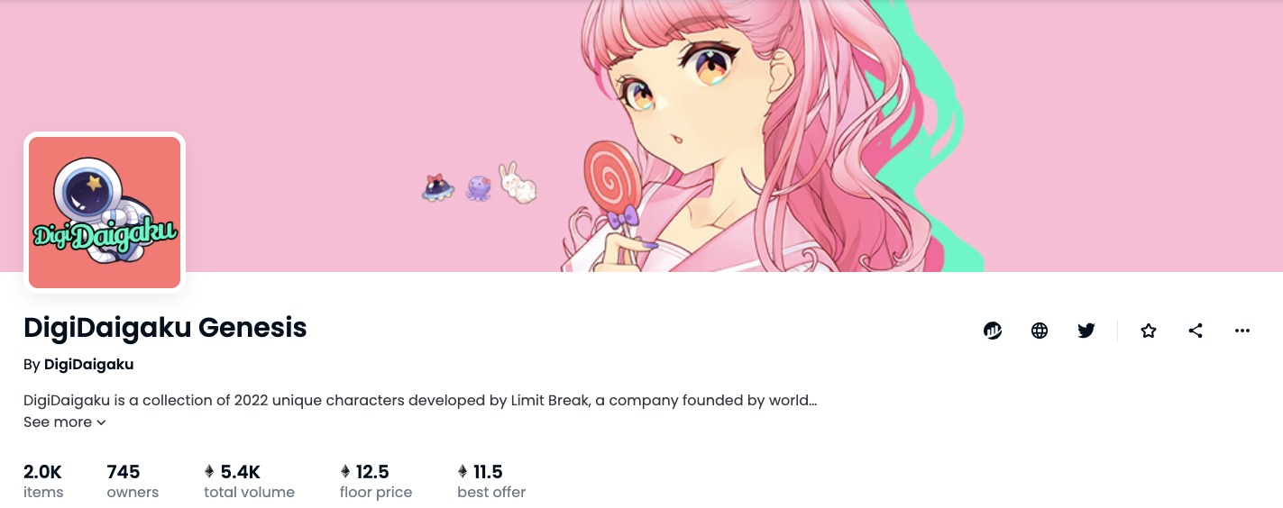 币圈子(120BTC.com)讯:本月9日公开发行的免费铸造NFT项目DigiDaigaku(限量发行2022枚)在低迷已久的NFT市场横空出世。