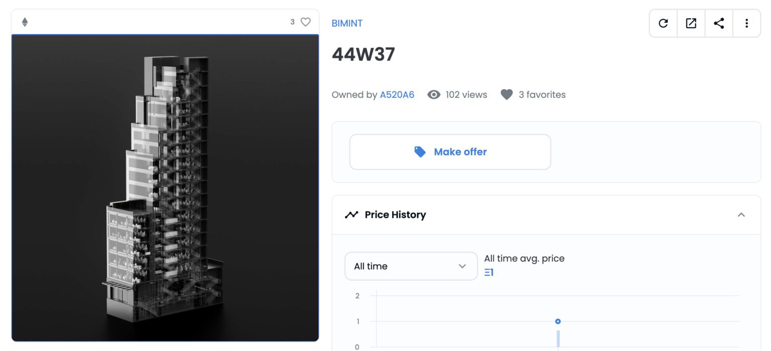 据悉,该NFT由擅长将实体建筑环境转化为数字模型的空间设计公司Integrated Projects所创建,并由房地产开发公司Azul NYC以1ETH的价格收藏。