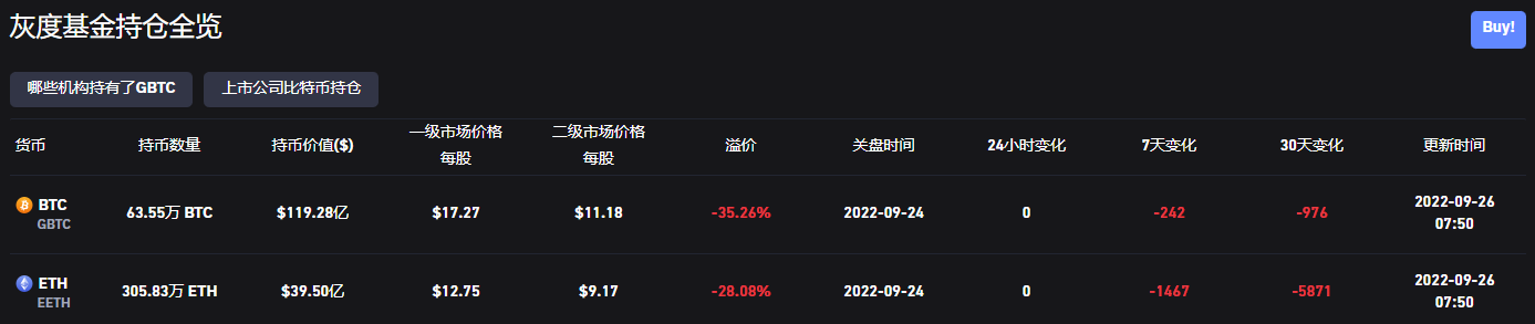 截至9/26灰度基金折价状况(coinglass)