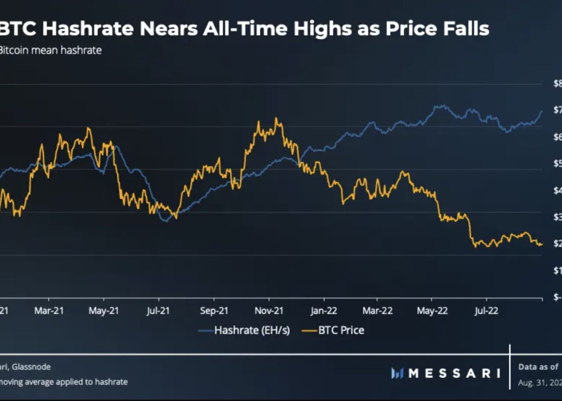 2021年第四季度,矿工收入达到48亿美元的峰值,但此后一路随着比特币价格的下降一路下滑。2022年第一季度和2022年第二季度矿工的季度收入分别下降了28%和22%。如果比特币的价格在第三季度末仍保持区间波动,鉴于能源价格高涨,季度矿工收入可能会继续呈下降趋势。