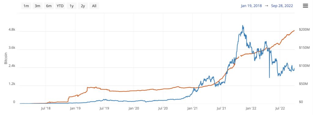 时间再拉长一些,根据《Bitcoinvisuals》数据,比特币闪电网路锁定的BTC相较于去年9月底时的3,000枚,在1年内增幅已超过六成。