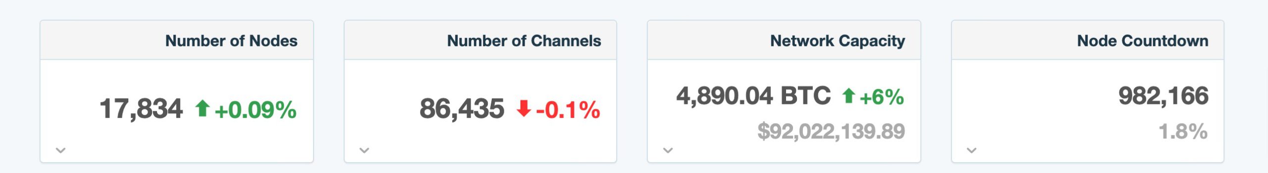 1ML网站统计数据显示,比特币闪电网络锁定的比特币数量已达到4,890.4枚,再创历史新高,总价值约为92,022,139.89美元,过去30天增幅达6%。另外,当前闪电网络节点数量为17,834个(近30日增幅为0.09%),通道数量为86,435个(过去30天降幅为0.1%)。