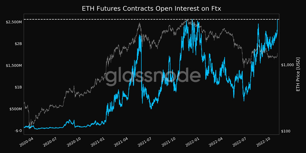 另外,Glassnode数据显示,ETH期货未平仓合约在FTX刚刚达到2,495,084,378.59美元创下近10个月高点,此前的高点为2,491,743,546.29美元,是在2021年12月27日所创下的。