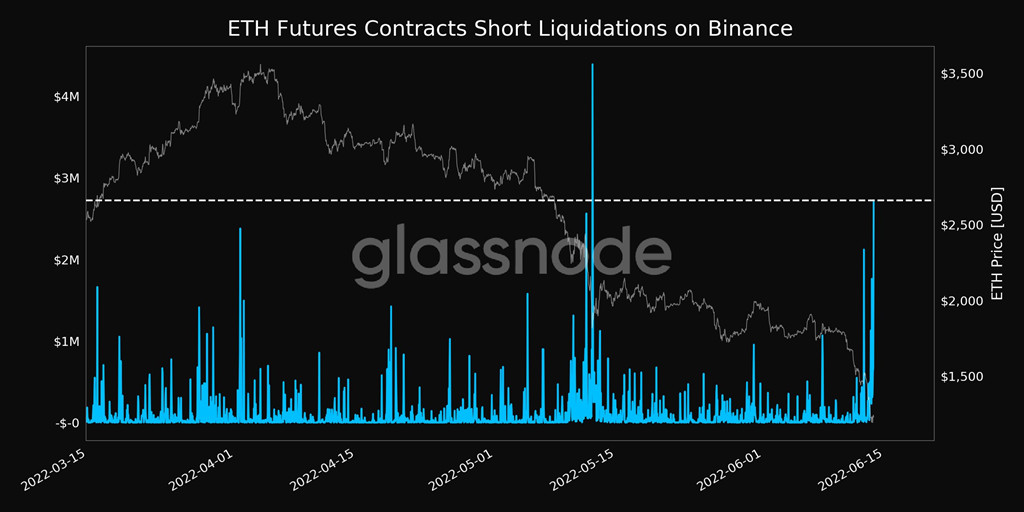 与此同时,据Glassnode数据显示,以太坊期货合约做空部位清算量在币安达到近1个月新高,为单日272万6378.98美元,此前的1个月高点发生在6月12日,为单日212万2894.73美元。